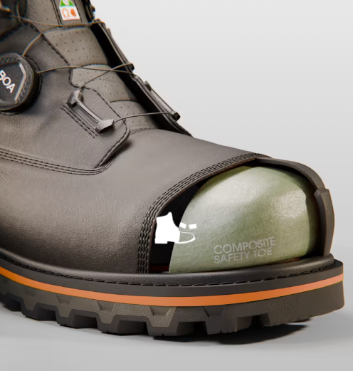 Composite safety toe work boot showing internal protective structure meeting ASTM standards
